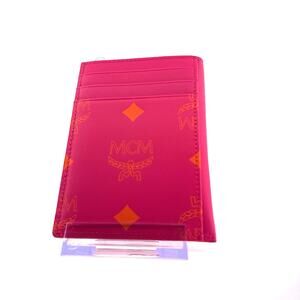 MCM Visetos Logo Card Holder in Fuchsia/Orange (Full Set with Box)
