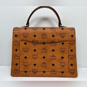 MCM Visetos Medium Patricia Pocket Satchel Cognac