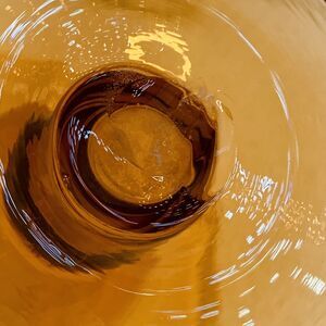 MCM Vtg Hand-Blown Amber Glass Yellow Vase Folded Open Top Pedestal Much Detail