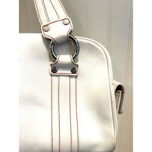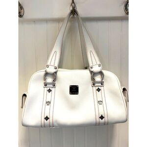 MCM White Leather Satchel with Silver Hardware and Red Stitching - FIRE!!!