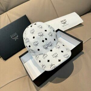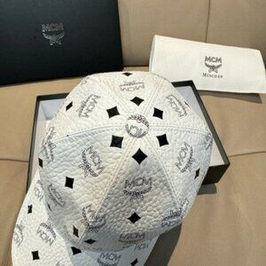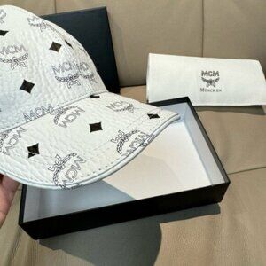 MCM White Visetos Monogram Baseball Cap