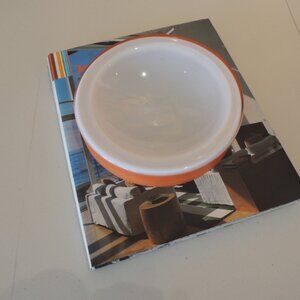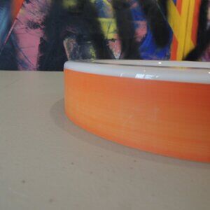 MCM White and Orange Round Milk Glass Decorative Bowl
