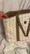 Elegant MCM tote featuring a white base with tan straps. Iconic logo pattern adds a touch of luxury.