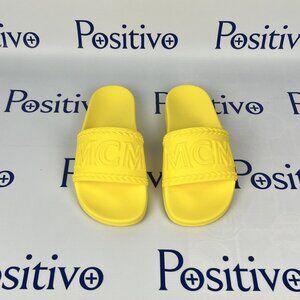 MCM Womens Yellow Big Logo Rubber Slides US 10 EU 40