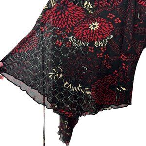 MCM Y2K Vintage Women Black & Red Floral Goth Top SZ XL Bell Asymmetric Sleeve