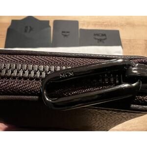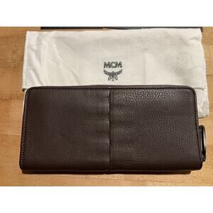 MCM Zip Around Brown Leather Wallet Clutch with dustbag