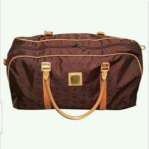Beautiful classic MCM made in Munich 55 travel bag chocolate brown w/ leather details in brass