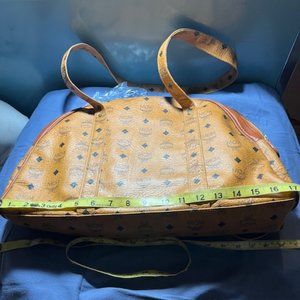MCM Shoulder Bag Large Dome Tote in Cognac Visetos Coated Canvas and Gold hardware. The condition of this bag is perfect except the top had little scratches as on the picture #4. This bag is very clean inside and outside.