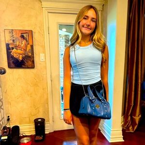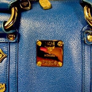 BEautiful cobalt bag MCM Mini Boston bag. Wear it crossbody or hand carry.6”x 5 1/2”