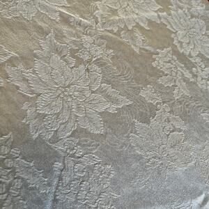 MCM vintage white damask tablecloth poinsettia floral cotton blend Holiday x-mas