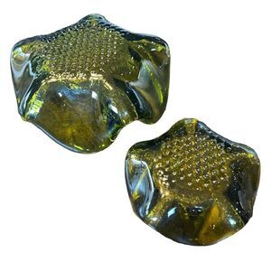 MCM Green Art glass Finger design nesting ashtray/candle holder set of 2