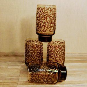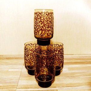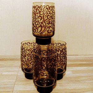 *MCM*LIBBEY PRADO*EMPIRE SCROLLWORK*GLASS TUMBLERS*SET OF FOUR 16 Oz*VTG 1970'S