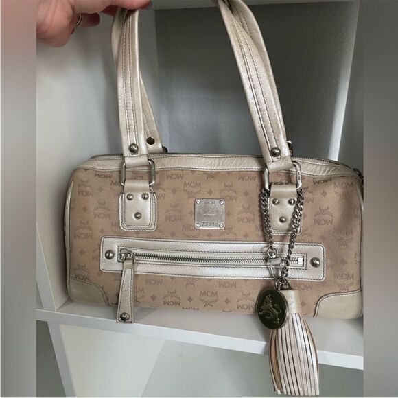 MCM Munchen Fabric Satchel In Very Good Condition has very minimal wear as shown in pics this bag is a beautiful bag inside and out ! I personally never used her