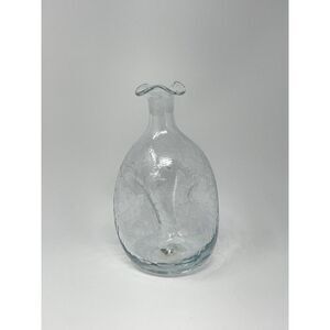 MCM Vintage Blenko #49 Clear Crackle Pinched Glass Decanter **No Stopper**