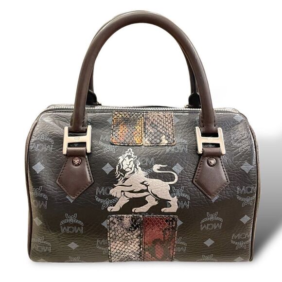 MCM Visetos Python Lion Princess Boston Top Handle Bag