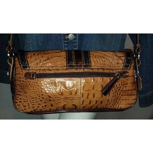 M.C. Marc Chantal Purse 2Tone Brown CROCO Leather Western Crossbody Shoulder Bag