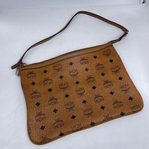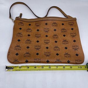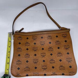 MCM authentic Cognac visetos zip Pouch entrupy COA