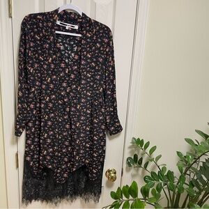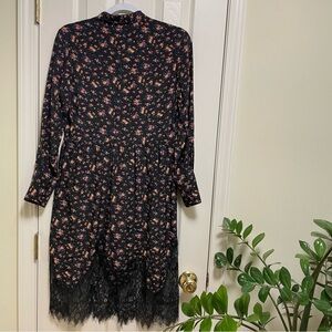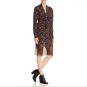 MCQ ALEXANDER MCQUEEN SILK FLORAL LACE TRIM HEM PEASANT DRESS US 6