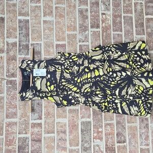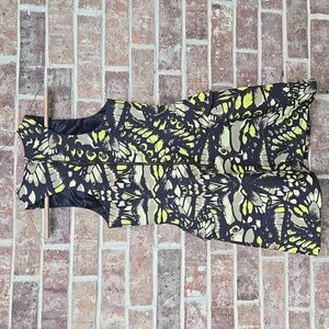 MCQ ALEXANDER MCQUEEN Size 2 Black & Lime Green Butterfly Print Peplum Dress