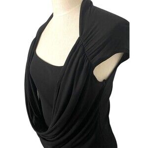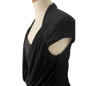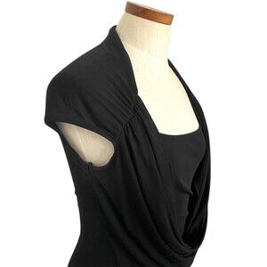MCQ Alexander McQueen Black Dress M Draped Cowl Neck Cap Sleeves 100% Viscose