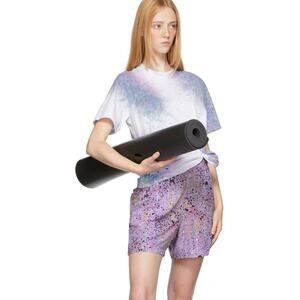 Viscose and lyocell-blend crepe shorts in purple featuring graphic pattern in multicolor. Mid-rise. Three-pocket styling. Elasticized waistband. Textile logo flag in purple at back waistband. Textile logo patch in purple at back pocket. Part of the Breathe collection.Supplier color: Lilac