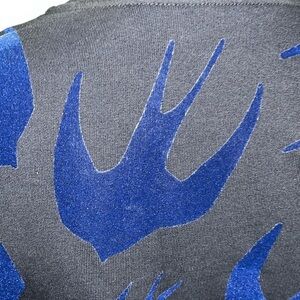 MCQ by ALEXANDER MCQUEEN pullover comes in a black cotton and elastane knit material featuring a swallow print velvet textured details, and a crew-neck. Made in Italy. Excellent Pre-Owned Condition.