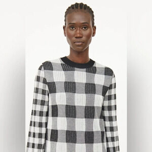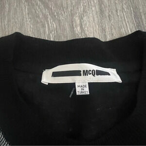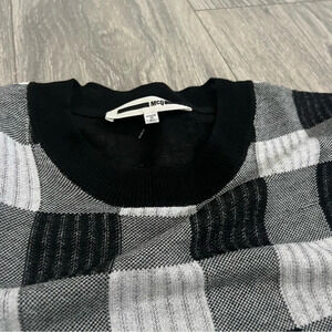 Pre-owned McQ black and grey long sleeve knit dress featuring crew ribbed neckline, ribbed cuffs and hemline and check print throughout with shimmer finish.
