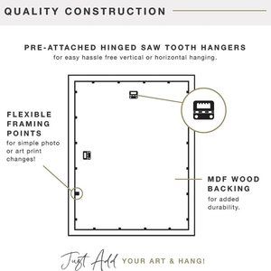 Easy To Use: Our modern hanging picture frames have MDF wood backs that make adding your photo or art print a breeze; Frames include 2 pre-attached sawtooth hangers for easy vertical or horizontal hanging