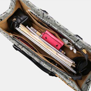 Designed to adapt to your daily needs, this tote bag comfortably accommodates large-size laptops such as the MacBook Pro 16" and ThinkPad X1 Extreme. We have optimized the main compartment by making the interior organizer pockets flat instead of pleated, providing more space for your essentials. Additionally, a wide elastic band on one side securely holds a water bottle, accommodating sizes up to 64oz, including popular brands like Hydro Flask.