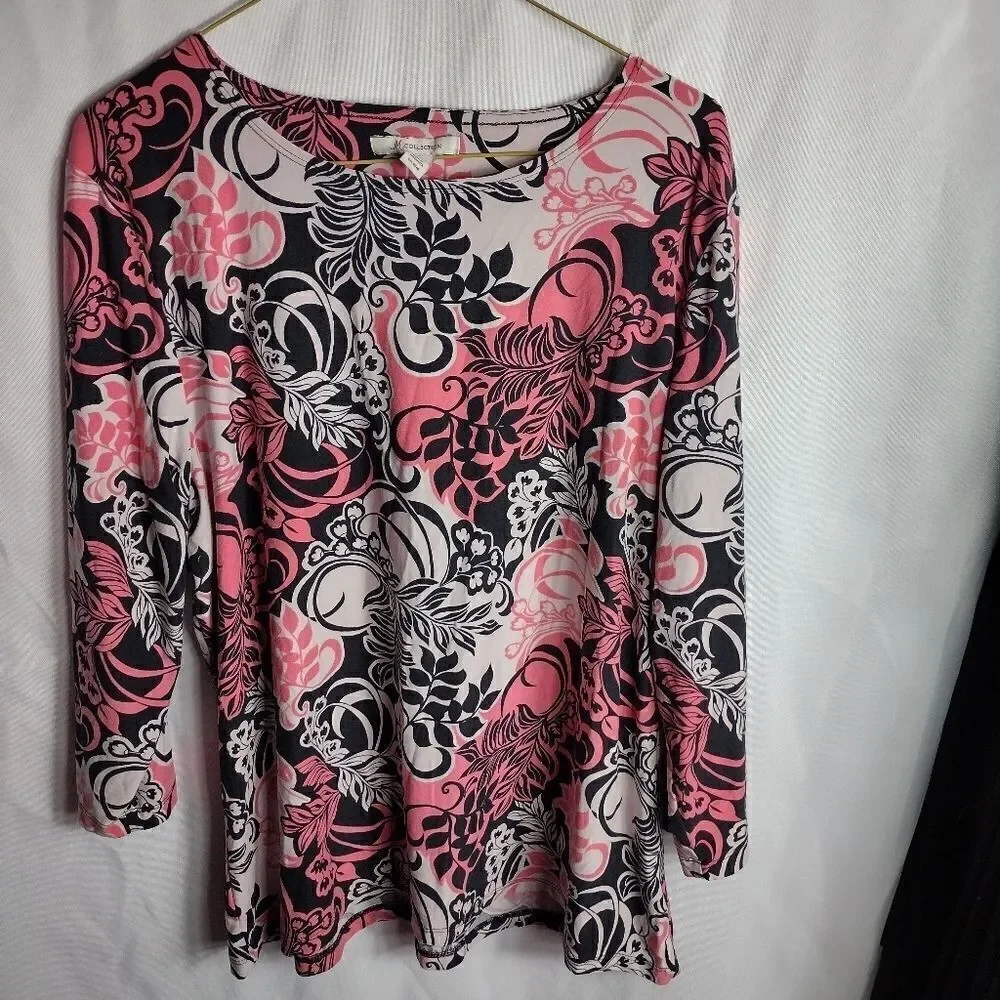 3/4 sleeve, polyester spandex blend top, floral print. chest 23" length 27". RR