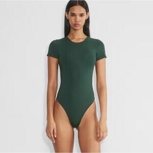 MD NWT Babaton Aritzia Contour Crew Bodysuit Sage Green Short Sleeve Thong Basic