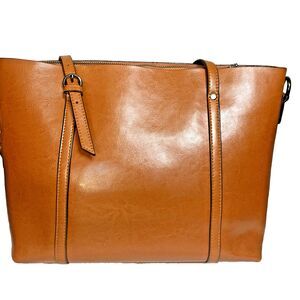 MDBM Maison de Beauté Provence Tan Leather Front Pocket Tote Handbag Messenger