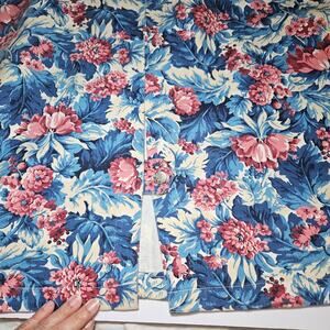 Embrace a bold vintage aesthetic with this stunning MDM Designs floral maxi skirt. Made in the USA from 100% cotton, this piece features a vibrant all-over print of blue and pink flowers on a cream background. The classic straight cut includes practical side pockets and a back slit for ease of movement. Perfect for achieving a cottagecore, grannycore, or unique maximalist look. 80's 90's era
