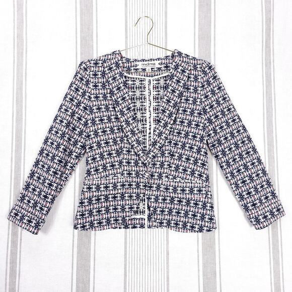 MDMS M-Conzept Blazer Medium Navy Blue Geometric Pattern Office Twee Cute