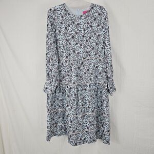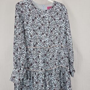 MDRN Floral Boho Victorian Retro Dress Sz XL Long Sleeves Tiered Midi Modest Light Blue Modern Citizen