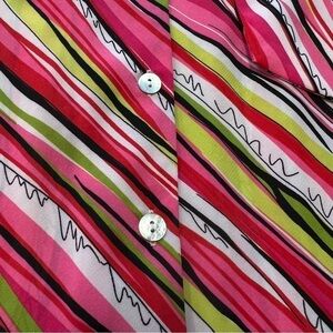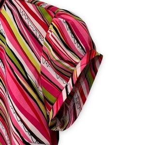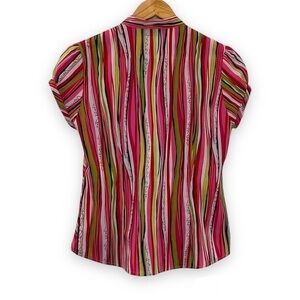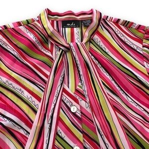 MDS California Vintage Button Front Tie Neck Striped Blouse Small S