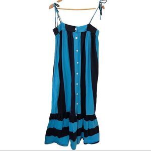 Blue maxi (100% Cotton). Shift. Square neckline. Sleeveless.