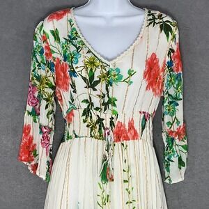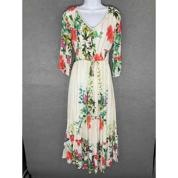 ME 2 Magic Maxi Dress Sz S Romantic Anthropologie White Gold Floral Gypsy Boho