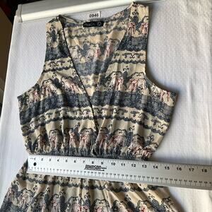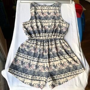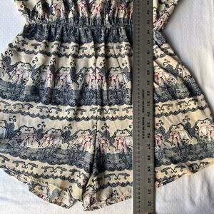 ME & CITY Women’s Sleeveless Short Jumpsuit Romper size L, Beige & Blue,Elephant