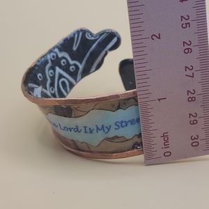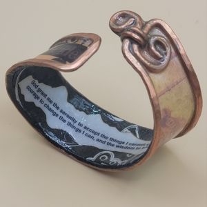 Bracelets are intricately handmade made w/recycled, recyclable, nontoxic, eco-friendly materials. Each has an authentic copper structure & are sealed with a sealant that makes the bracelet 80% moisture resistant (from sweat or etc.). DO NOT immerse in water. Length ranges between approximately 6-7 inches. Each is slightly flexible to open and close to fit arm. They take 10-12 hours to create w/love. Oxidation & aged look is normal & enhances the design of jewelry. Do not stretch or open too much. Slightly polish copper if needed.