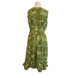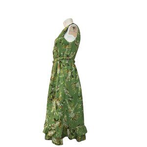 ME George Size 4 Green Floral Ruffle Sleeveless Dress Flare A-Line Belted
