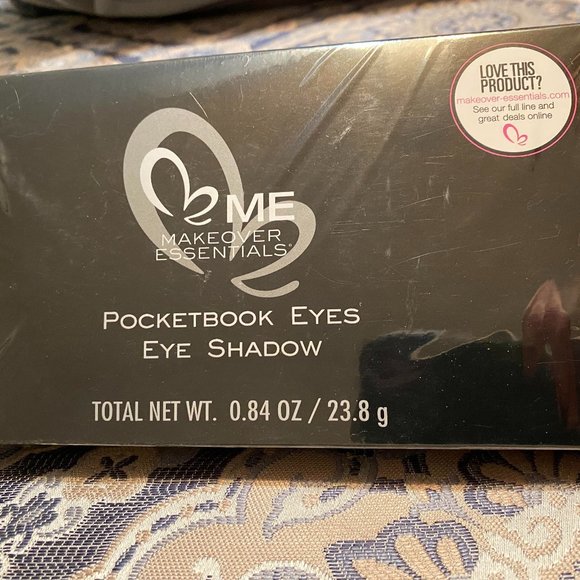 Makeover Essentials eyeshadow palette: 22 shadows and 2 applicators. NEW IN PACKAGING. Case can also be used as a clutch when you finish the shadows! Has card slots and room for cash, cell phone (depending on size), etc.