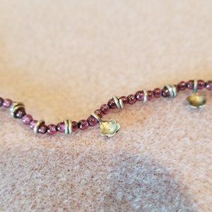 ME & RO Garnet Beaded & Silver Fower Necklace