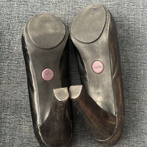 4 inch heel and almond toe with beautiful lizard black leather wrapping the heel