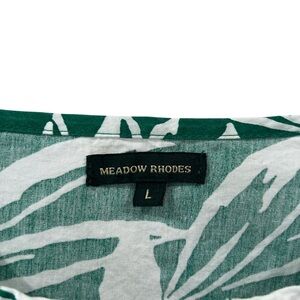 MEADOW RHODES women’s tiered midi dress L green white leaf print tropical cotton