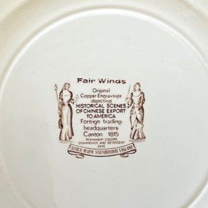 The Fair Winds "scenes of Chinese export to America" Dinner Plate is a unique and collectible piece that celebrates American history and the seafaring traditions of the past. The Plate features scenes of Chinese export to America in the center and on sides an eagle with E. Pluribus Unum underneath, a scene of the Wall Street Dock New York, and a scene of the US Delaware Capturing Le Croyable and a scene of New York Harbor 1830. Handcrafted with love, the plate is sure to impress your guests on special occasions