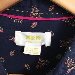 MEAVE BY ANTHROPOLOGIE / Blue Printed Long Sleeve Button Down Size 0