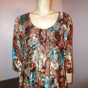 MECHANT Burnout VELVET Blouse Size L TOP Tunic 3/4 SLEEVES Asymmetrical FLOWY