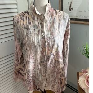 MECHANT Womens Tunic MEDIUM Beige Crinkle Faux Suede Print Artsy Bohemian