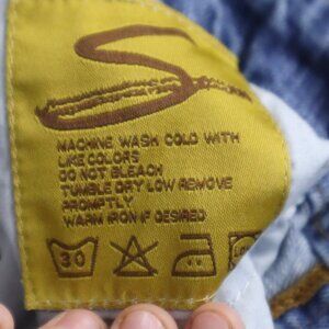 Good condition but has a tear near the crotch seam which needs repaired. Approx measurements: Waist 32", Rise 9", Inseam 26", Overall 36".